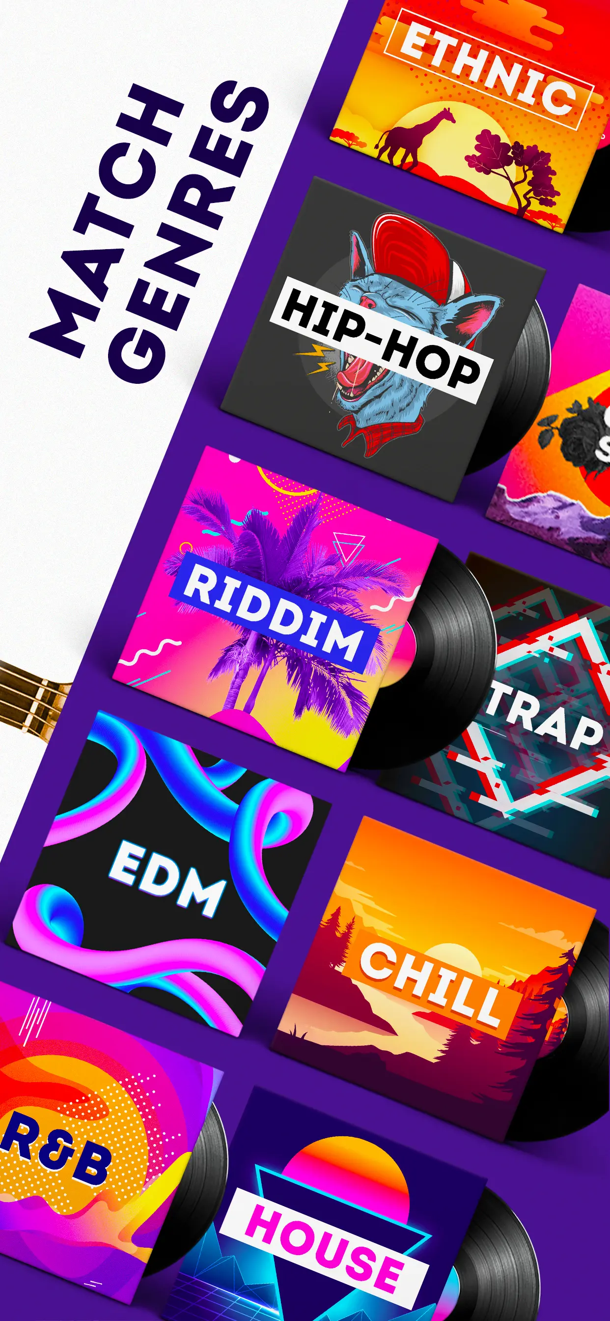 Mix packs in different music genres and create awesome performances! Make your cocktail with a portion of Lofi hip-hop, a few portions of a trap, and of course RNB vocals! Mix it with MixMate!